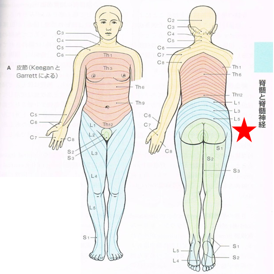 ③イラスト赤★の位置関係で腰痛だと勘違いする (※L=腰椎Lumberの事)