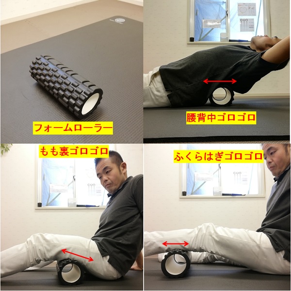 ③フォームローラー。話題の筋膜リリースってやつです。ストレッチの実感を得るには、筋肉を柔らかくしてから伸ばします。