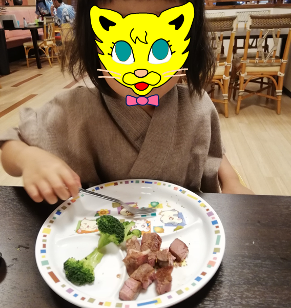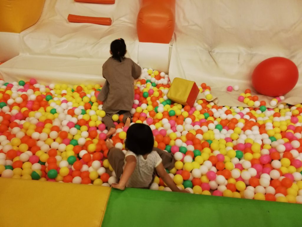 宿泊した稲取の赤尾ホテルは子供に優しく、我が家以外にも大勢子連れのご家庭がいましたね。巨大な滑り台にボールプール付きです。そしてボディビルダーのような食事の次女。。。