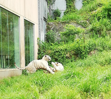 アニマルキングダム(動物園)では珍しいホワイトタイガーがいます。キリン近っ!