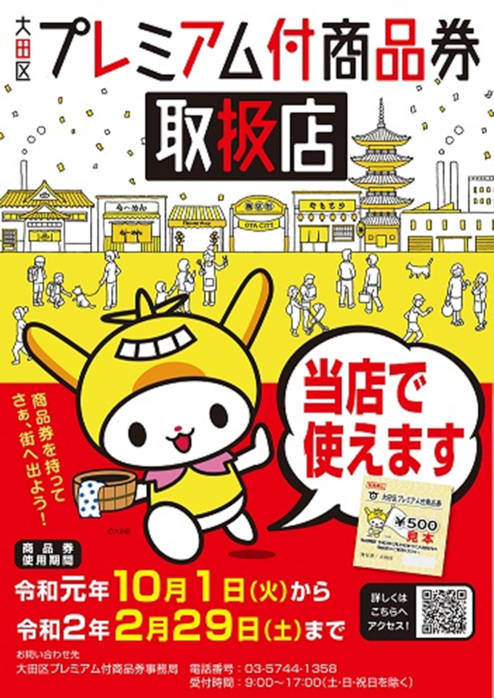 大田区プレミアム付商品券も取り扱いしております。お持ちの方はぜひご利用くださいませ。